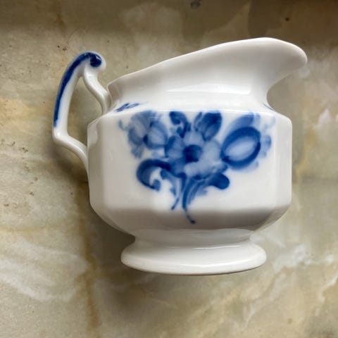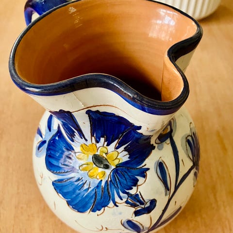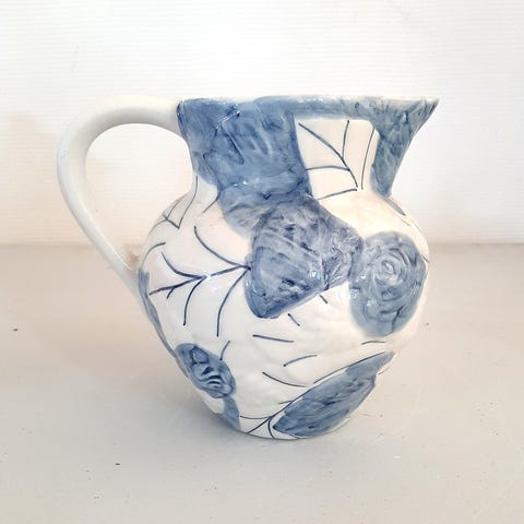 Blå keramikkande 14 cm høj. Rigtig sød med en buket blomster.