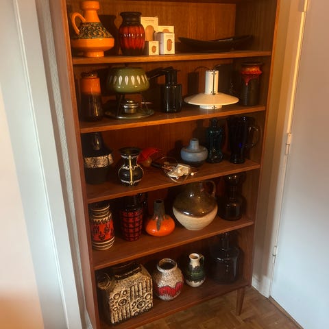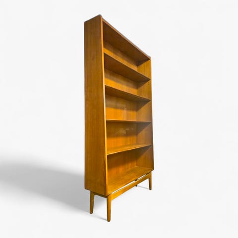 Bornholmer reol i teaktræ,med skuffer,Jalousilåger og udtrækkelig skriveplade.