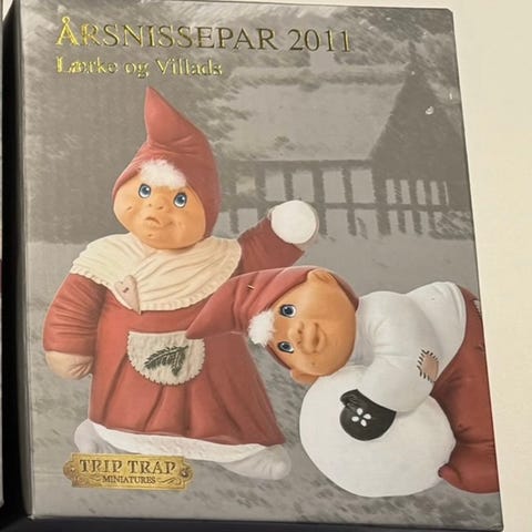 Stor samling årsnisser fra Trip Trap og Klarborg. Der følger originale kasser med til en del af dem, men ikke dem alle.