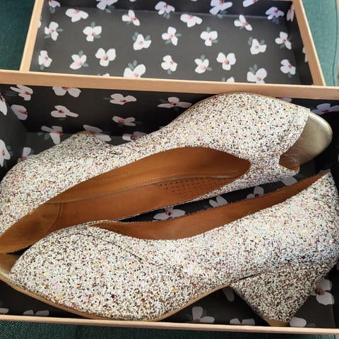Skoene er kun brugt en enkelt gang og fremstår nye med meget let slid på sålerne (se fotos).