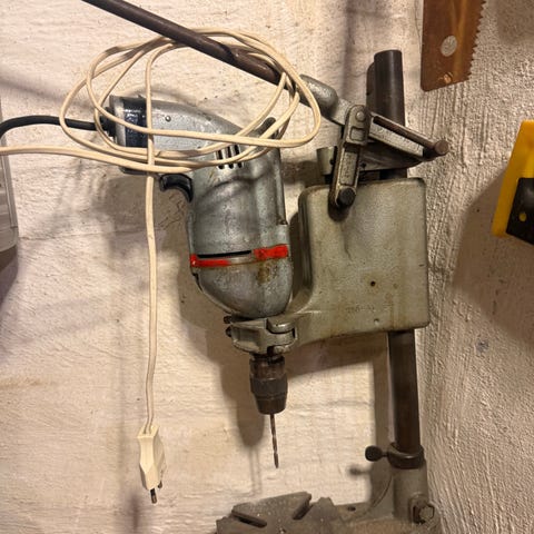 Eagle boremaskine med tilbehør og opbevaringskuffert. Indeholder borepatron, ekstra håndtag og diverse tilbehør til borearbejde. Maskinen er elektrisk drevet og leveres i en robust kuffert til nem transport og opbevaring.