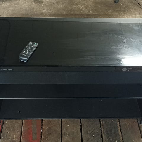 Yamaha tv-bord - Hifi bænk i sølvfinish med matgrå glashylder og skjulte hjul . Du får her et solidt sted at stille dit hi-fi/TV