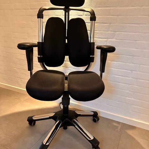 Har denne Hara tech kontorstol. Den er anbefalet af danske ergoterapeuter da den afhjælper og forebygger rygproblemer
