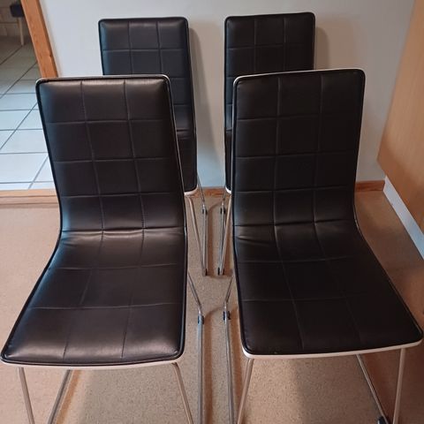 4 stk stole formet som en Napoleons hat med ryglænet de trænger til en rensning men det er prisen sat efter sidder utrolig godt i dem
