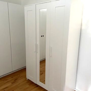 Skabet skal skilles og afhentes på Østerbro i lejlighed i stuen.