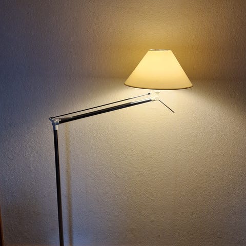 Gulvlampe fra Philips som kan justeres i højden fra ca 1.20 m til 1.90 m. Kan drejes men ikke tiltes. Nypris ca 800