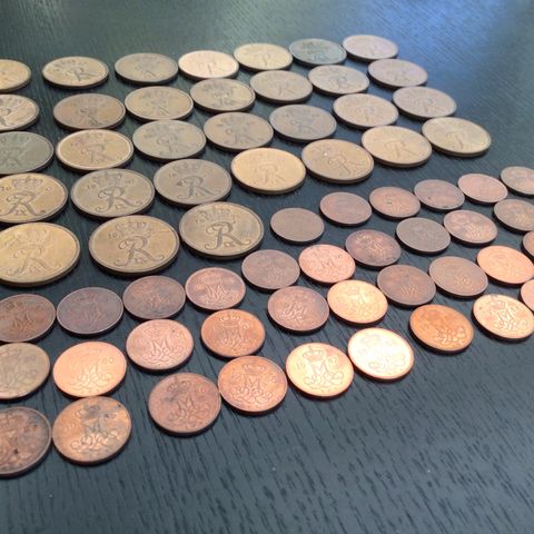Sælger ca. 100 stk originale danske 5-øre mønter flest fra 1928 og 1940.