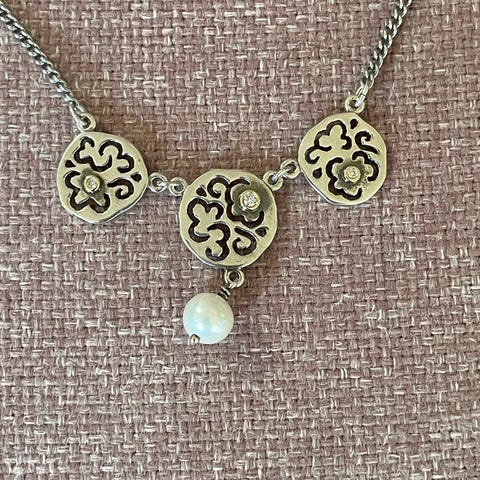 Rigtig fin halskæde til den fine dame eller pige. En kæde af tre rækker og perler med sten i meget tung og meget vedligeholdt cirka 100 år gammel søger en som gerne vil gå med den fordi den kun ligger i skabet..