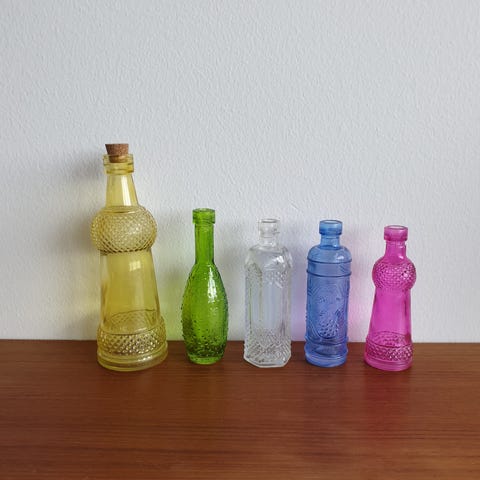 77 små glasflasker. Glasvaser 9,4cm. Borddækning konfirmation bryllup festartikler dåb bordpynt