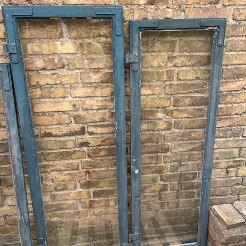 Ca 100 år gamle vindues rammer i flere størrelser med kitfals og trukket glas.