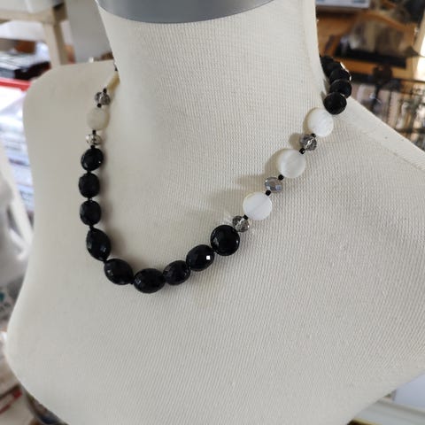 Vintage halskæde med skiver af perlemor og muslingeskaller i forskellige farver