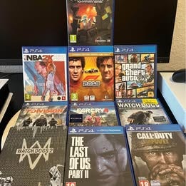 PlayStation 4 spilpakke bestående af 9 forskellige spil. Inkluderer titler som Battlefield, Ride, Spider-Man, FIFA 20 og flere. Spil til forskellige genrer og spillestile, kompatible med PlayStation 4 konsol.