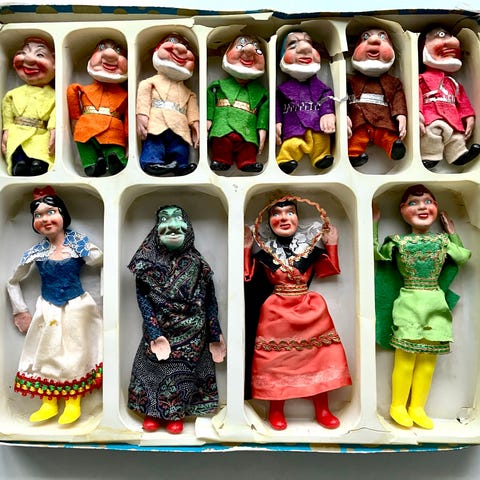 Vintage dukker fra eventyret Snehvide og de syv dværge