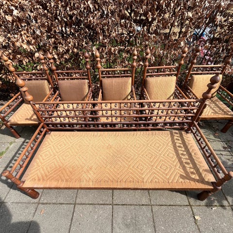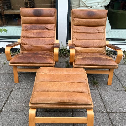 To gennemrenoverede cigar lænestole designet af Grethe Jalk til det amerikanske marked, sjældent set i Danmark.