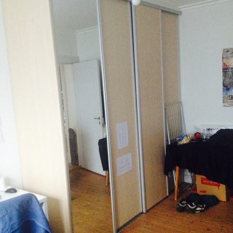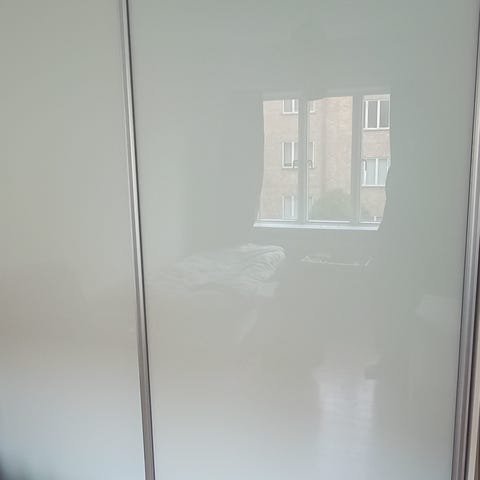 Hylder/ bøjlestang mv må gerne tages men de er lavet “indbygget”, dvs. der ikke er bagside af skab med.