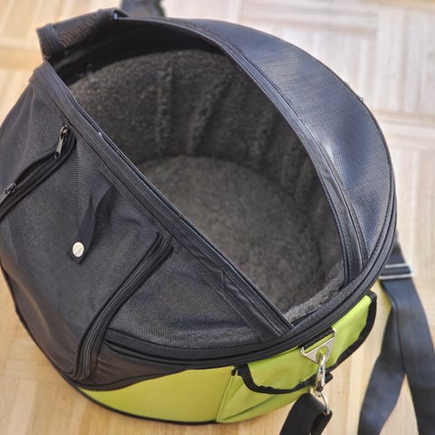 Transporttaske til kæledyr i grå og sort farve med netvinduer for ventilation. Designet til nem transport af små kæledyr. Fremstillet i holdbart materiale med håndtag til bæring.