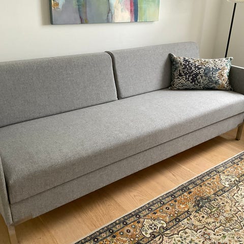 INFO: Produkterne, jeg sælger, stammer fra producenten og kan have været brugt til fotos, stået i showroom eller være udgåede modeller eller tekstiler. Møblerne har typisk kun været udstillet med begrænset brug og kan derfor fremstå næsten som nye. Der kan forekomme mindre skader eller fejl – synlige skader eller fejl vil altid være beskrevet i annoncen. I enkelte tilfælde sælger jeg brugte sofaer, og dette vil altid fremgå tydeligt.