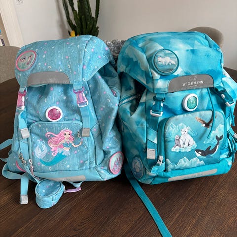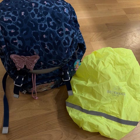 Sælges min datters første skoletaske. Den fejler absolut ingen ting - udover at madpakken mangler inddeleren.