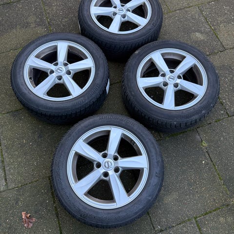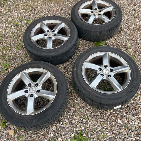 4 originale fælge med originale hjulkapsler og vinterdæk.