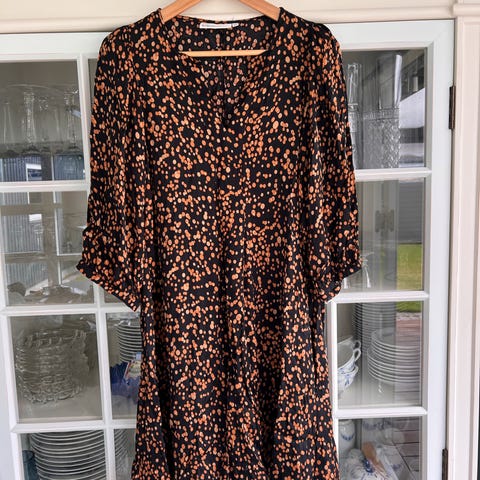 Karen by Simonsen hverdagskjole i størrelse 38 til kvinder. Kjolen er grøn med et mønster og er lavet af polyester.