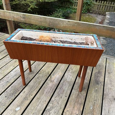 Rigtig fin retro plantekasse i teak-træ. Kom med et bud