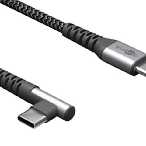PRIS-MATCH! USB-C kabel stofbeklædt, vinklet | Grå (60W, SuperSpeed) | USB-C til USB-C 2.0 kabel i stof med 90 grader vinkel i den ene ende og kraftige stik. Kan bruges til bl.a. hurtig opladning, helt op til 60W.