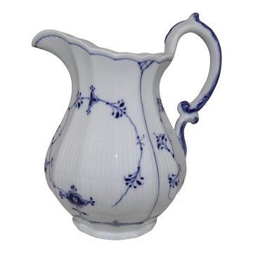 Royal Copenhagen Musselmalet Riflet, stor flødekande.