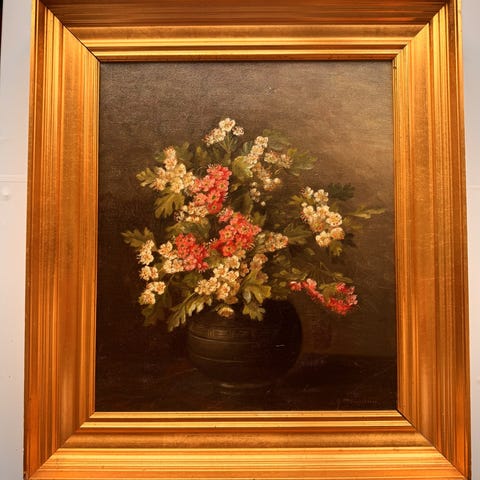 Maleriet er signeret nederst (F. Swa… / Swartz – signatur slidt men synlig). Udført med tydelige penselstrøg, god figurtegning og stærk stemning. Leveres i forgyldt ældre træramme som klæder motivet særdeles godt.