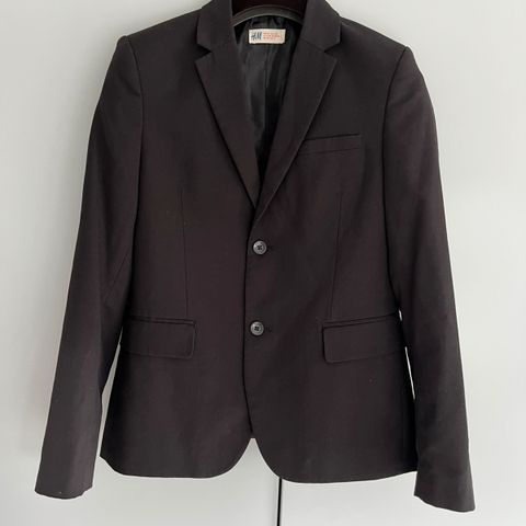 Lyseblå sildebensmønstret jakke af 51% hør og 49% bomuld. Virkelig lækkert materiale. Foer af 100% polyester. Se størrelsesguide i billederne.
