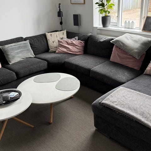 Hjørnesofa med chaiselong. Lysegrå. Uden pletter. Pæn og velholdt