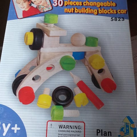 Solidt træ byggesæt med skruer, møtrikker, ‘brædder’ og meget mere.