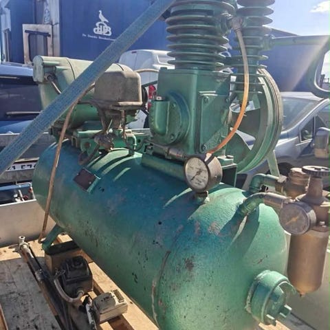 Sigurd Stenhøj Kompressor. Industriel kompressor med elektrisk motor, produceret i Danmark. Anvendes til trykluftproduktion i forskellige industrielle sammenhænge.