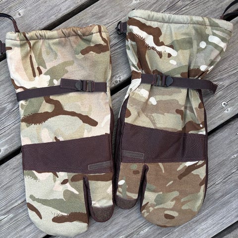 Ubrugt gave - luffer - som kan foldes hen over fingervanter samt isættes håndvarmere.