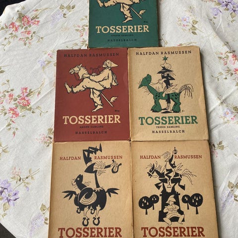 Halfdan Rasmussen Tosserier bog udgivet af Det Schønbergske Forlag. Indeholder et udvalg af tosserier med illustration på omslaget.