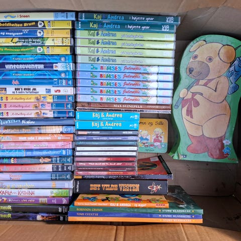 Blandede børnefilm. Mogle nye i ubrudt embalkage, andre uden cover. Som på billeder