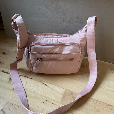 Helsinki crossbody fra AURA. Tasken har en lynlåslomme på forsiden og bagsiden. Indvendig er et stort rum, to små lommer og en lynlåslomme. Lukkes med lynlås og har en justerbar crossbody-strop. For: 100 % polyester.
