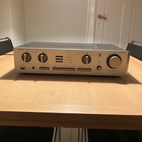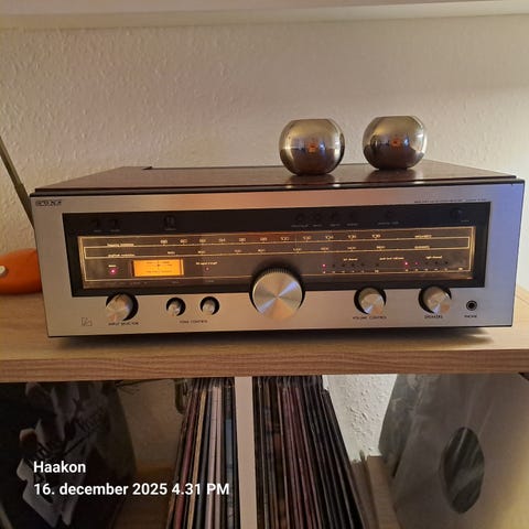 En Luxman R1050 i absolut topform,den er lige blevet tjekket for fejl og. Mangler og den var perfekt så den er blevet opgraderet lidt af radiomekaniker,et super eksemplar,som spiller helt fantastisk