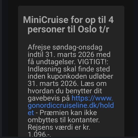 Norled MiniCruise MiniCruise er en kort krydstogtoplevelse, der varer op til to dage. Turen tilbyder en afslappende ferie med udsigt til bylandskaber og vand. Egnet til rejsende, der ønsker en kort ferie uden at skulle planlægge lange rejser.