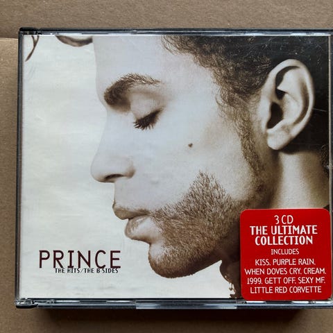 Prince, The Hits / The B-Sides CD med 3 diske indeholdende forskellige sange. Indeholder numre som "When Doves Cry", "Little Red Corvette", "I Would Die 4 U" og flere. Udgivet under Paisley Park Records. Dba 5