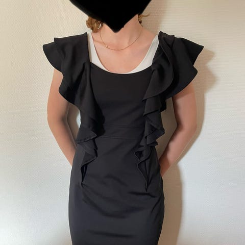 Elegant sort kjole med tynde stropper og et plisseret design. Kjolen har en V-udskæring, der giver et feminint touch. Perfekt til både hverdag og festlige lejligheder.