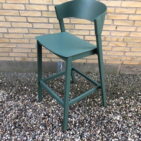 Barstol med sæde og ryg af formspændt egetræ, stel med runde tilspidsede ben af massivt lakeret egetræ. Fremstillet hos Muuto.