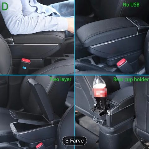 Armlænet består af en robust plastikbund og et konsolrum med et polstret låg, som du komfortabelt kan hvile armen på.