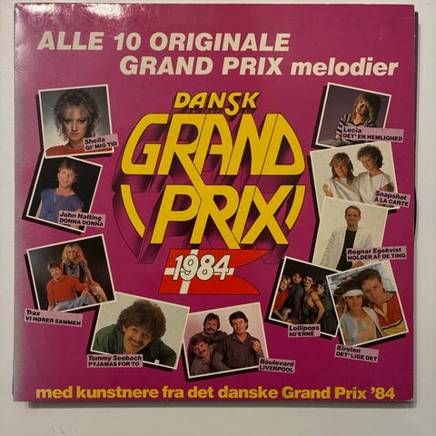 Dansk Grand Prix 1985 musik album på brugt vinyl med alle 10 originale Grand Prix melodier. Indeholder kunstnere fra det danske Grand Prix.