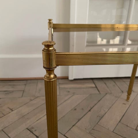 Fransk sidebord / lampebord / coffee table fra 1960'erne i messing og marmor