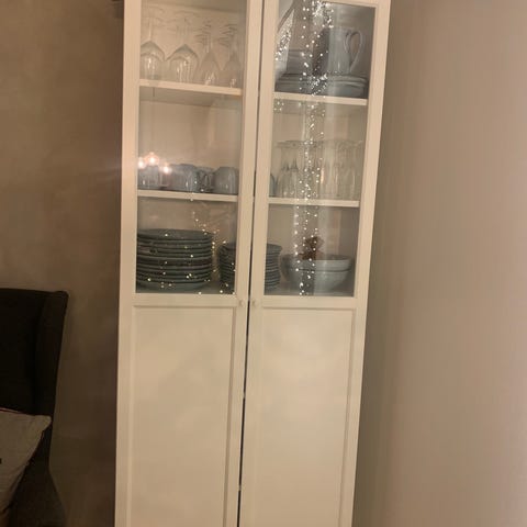 Billy vitrineskab i grå fra IKEA. Skabet er i fin stand.