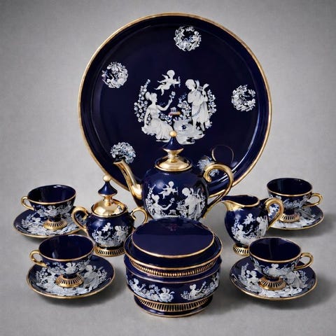 Den er italiensk og håndmalet og fra perioden 1890-1900, så langt over 100 år gammel.