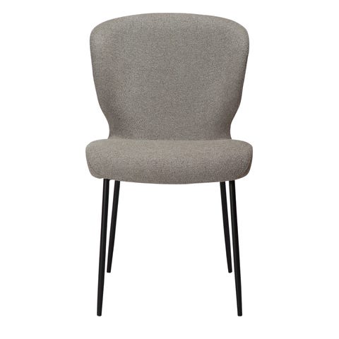 Lækre solide Paragon spisebordsstole fra Danske Danform, i sortbejset ask og gråt slidstærkt boucle (pebble earth) på siddefladen. God siddekomfort og god kvalitet.
