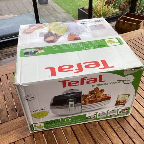 Tefal ActiFry 2in1 Airfryer med kapacitet til 1,5 kg mad. Sort farve. Materiale inkluderer plastik og metaldele. Designet til tilberedning af mad med varmluft og minimal olie. Indeholder to lag til samtidig tilberedning af forskellige fødevarer.