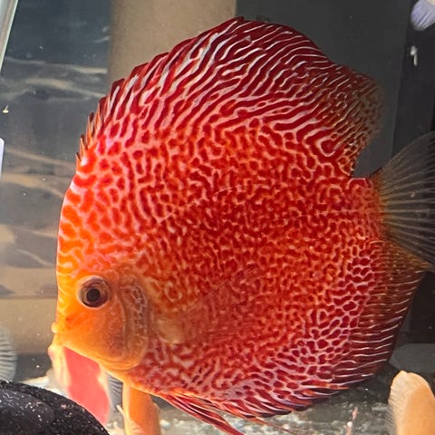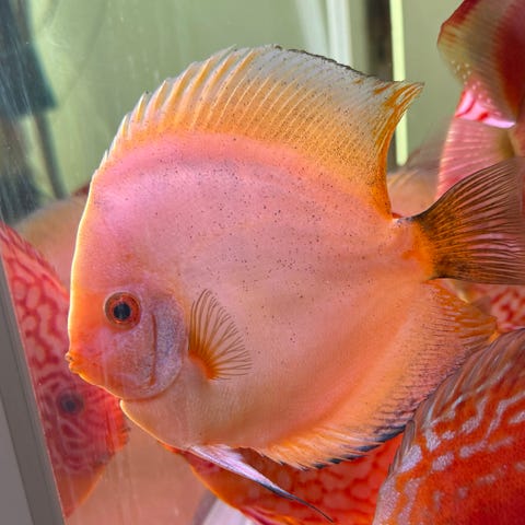 Jeg har en stime på 7 ungfisk, jeg sælger. De største er 10-11 cm. De mindste er 7-8 cm.
