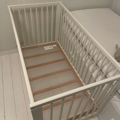 IKEA Tremmeseng til børn i hvidt træ. IKEA Gulliver tremmeseng 60x120 sælges med madras. Den er i fin stand. Få brugsmærker.